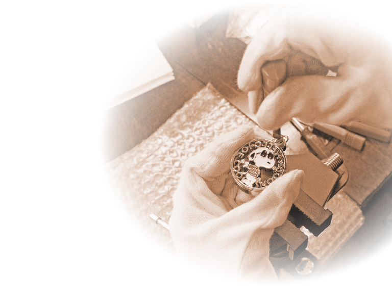 高度な技術と時間が必要な透かし模様。デザイナーのこだわりがつまったスヌーピーが表現されています。