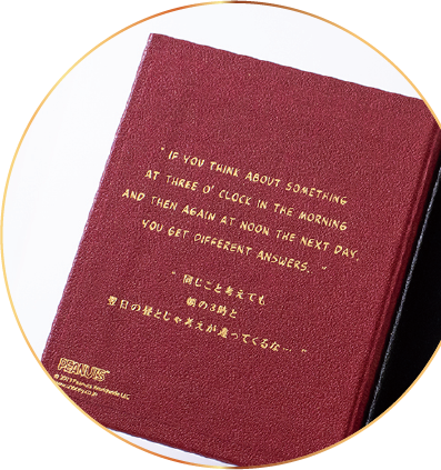中を開けると、時間に まつわるスヌーピーの名言が 載っています。 まるで絵本のような 可愛らしい小箱。 小物入れとしても お使いいただけます。Line Up
