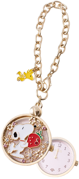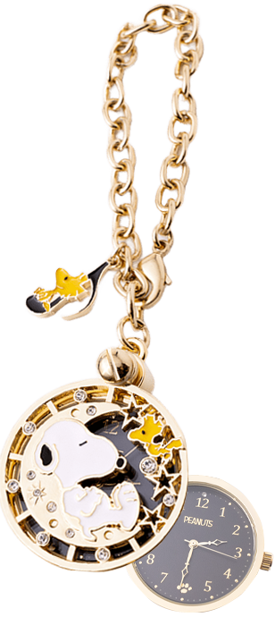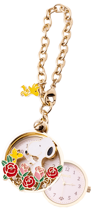 全4種類それぞれにかわいいウッドストックのチャームをあしらっています。
