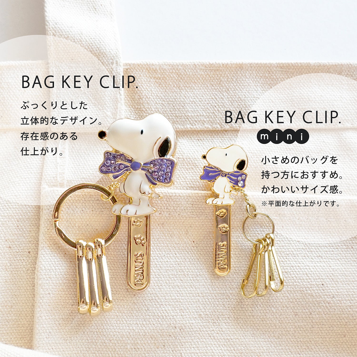 PEANUTSの可愛い世界観そのままのバッグキークリップです。