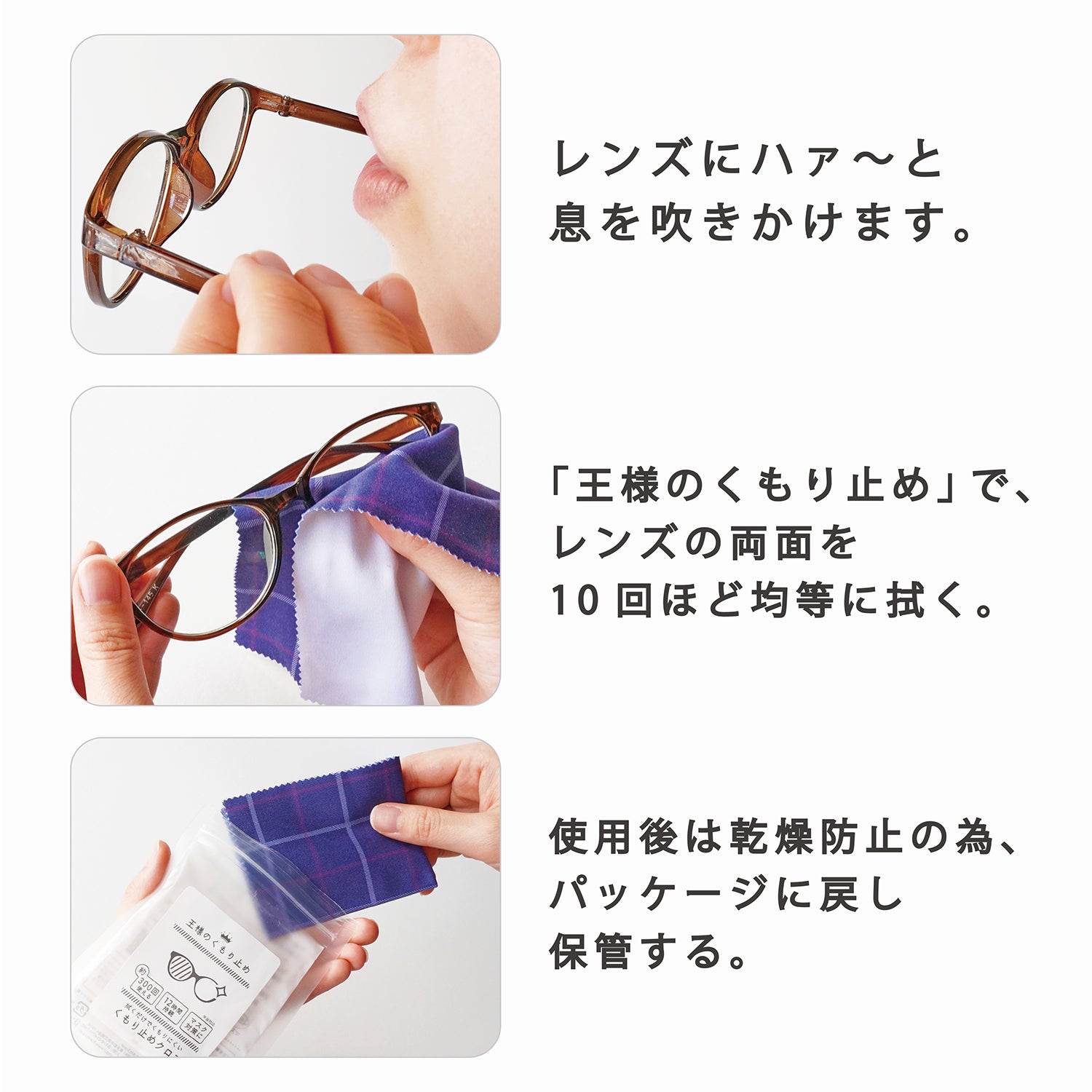 王様のくもり止めとは、マイクロファイバークロスに特殊なコーティングを施し、